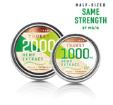 - Hemp per container: 2,000 mg (42 g size); 1,000 mg (21 g size)